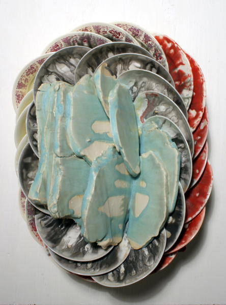 During my residency at the Pottery Workshop in Shanghai, China these feelings of the United States consumption were drawn into sharp perspective through my looking into a new culture. For instance in Yixing, a small town in China, I was moved by the tremendous volumes of pots lining the streets, which were neatly stacked taller than most semi-trucks. They were powerful symbols of human industriousness and the will to transform raw material into value and structure. Conversely, I also saw massive amounts of ceramic waste that was discharged by the factories. Plates were hopelessly stacked in the backyards of people’s homes because there is no end user for pieces that are not perfect and it is too expensive to move them to a landfill. Upon my return I became hyper aware of the full circle of creation to consumption, and to the disregarded. In my work I interrupt this process before the final disposal to inject new meaning and to breathe life into these objects and to help them speak again.